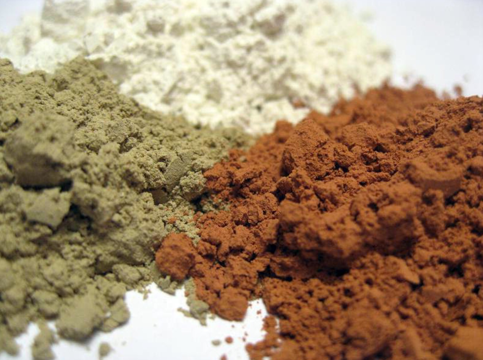 - La arcilla verde debe su color es debido a los óxidos de hierro ferroso y de magnesio. Es muy rica en oligoelementos.